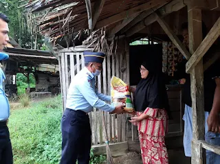 Adapun paket bantuan sosial Kumham Peduli Kumham Berbagi per orang diberikan dalam bentuk beras, minyak goreng, gula, mie instan, sarden, dan susu.