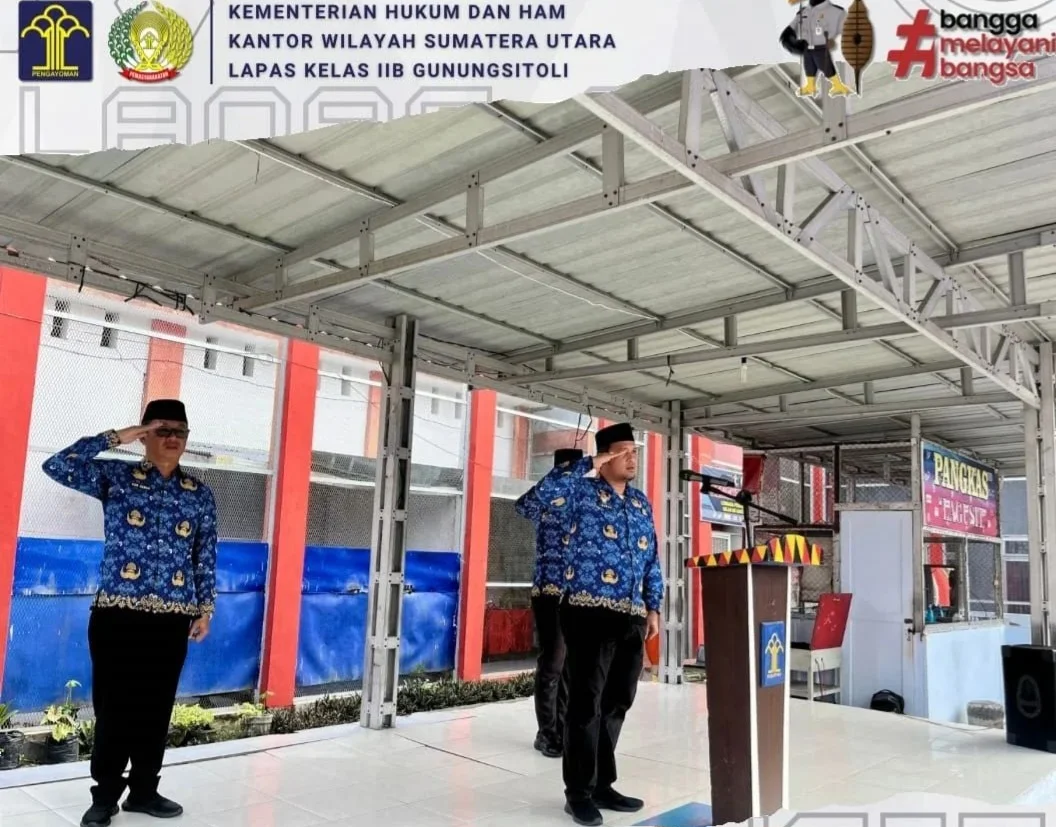 Pahlawanmu, Cintai Negerimu" yang berlangsung di lapangan lapas Gunungsitoli dengan penuh khidmat lan diikuti oleh seluruh petugas lapas dan seluruh warga binaan.